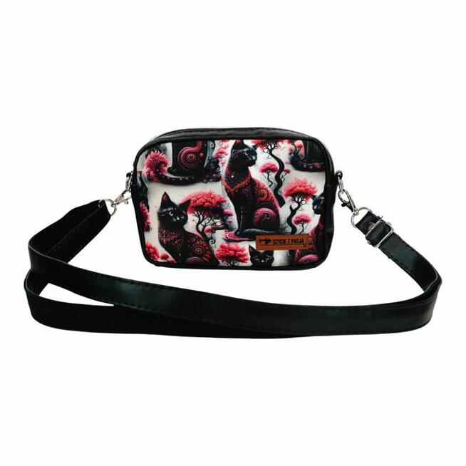 Czarna mini torebka box z motywem kotów Postaw na ponadczasową elegancję z nutą oryginalności dzięki Mini Torebce Box ...