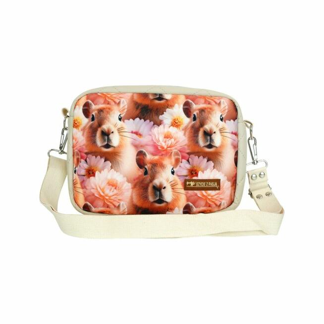 Beżowa Torebka Box z Motywem Kapibary Jeśli szukasz torebki, która łączy praktyczny kształt z nietuzinkowym wzorem, ...