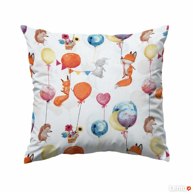 Bawełniana Poszewka 40x40 cm – Balonowa Parada ZwierzakówBawełniana poszewka z kolorowym motywem balonów i zwierzaków to wyjątkowa dekoracja do dziecięcego pokoju. Jej bajkowy wzór z unoszącymi się w powietrzu balonami oraz uśmiechniętymi zwierzętami pobudza wyobraźnię maluchów i wnosi do wnętrza radość oraz kolor. To doskonały wybór dla rodziców, którzy szukają funkcjonalnych, ale także pięknych dodatków do wystroju dziecięcego pokoju.