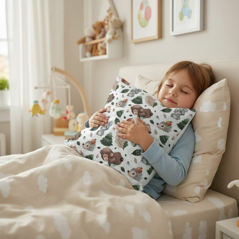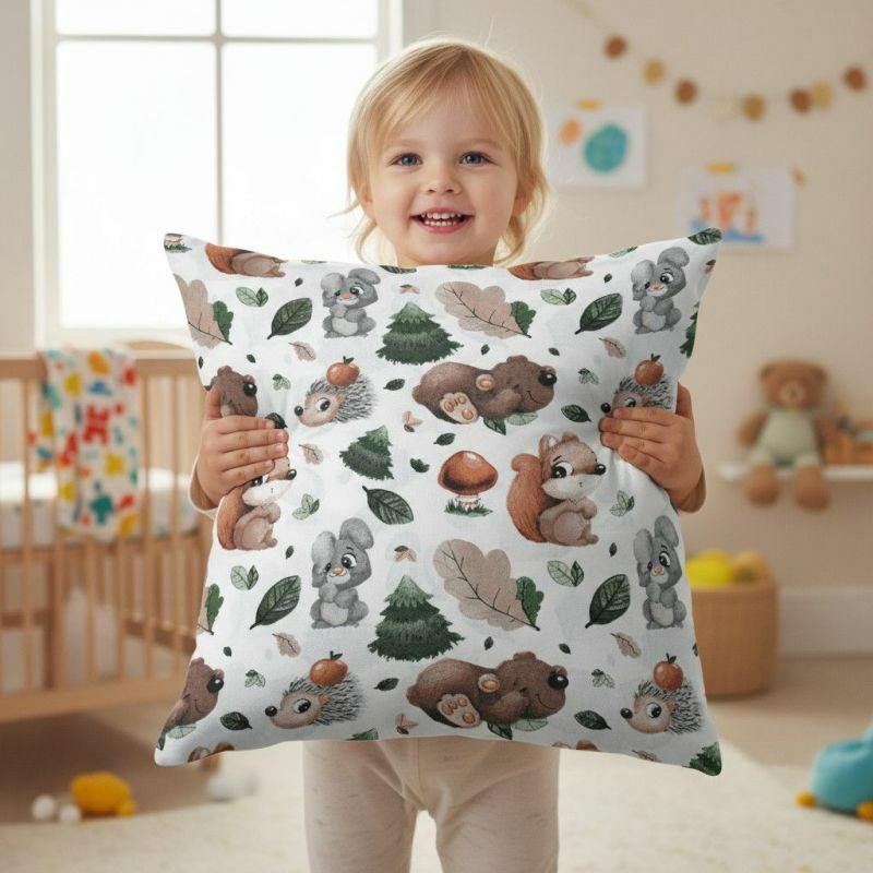 Leśna poszewka z jeżykiem i misiem – naturalny akcent w dziecięcym pokojuWprowadź do wnętrza dziecięcego pokoju odrobinę natury i przytulności dzięki bawełnianej poszewce na poduszkę z motywem jeżyka i misia. Uroczy wzór przedstawiający leśne zwierzątka – jeża, misia i ich przyjaciół – pobudza dziecięcą wyobraźnię i nadaje wnętrzu ciepły, przyjazny charakter. To doskonały wybór dla rodziców, którzy szukają nietuzinkowych dodatków dekoracyjnych łączących estetykę z komfortem.