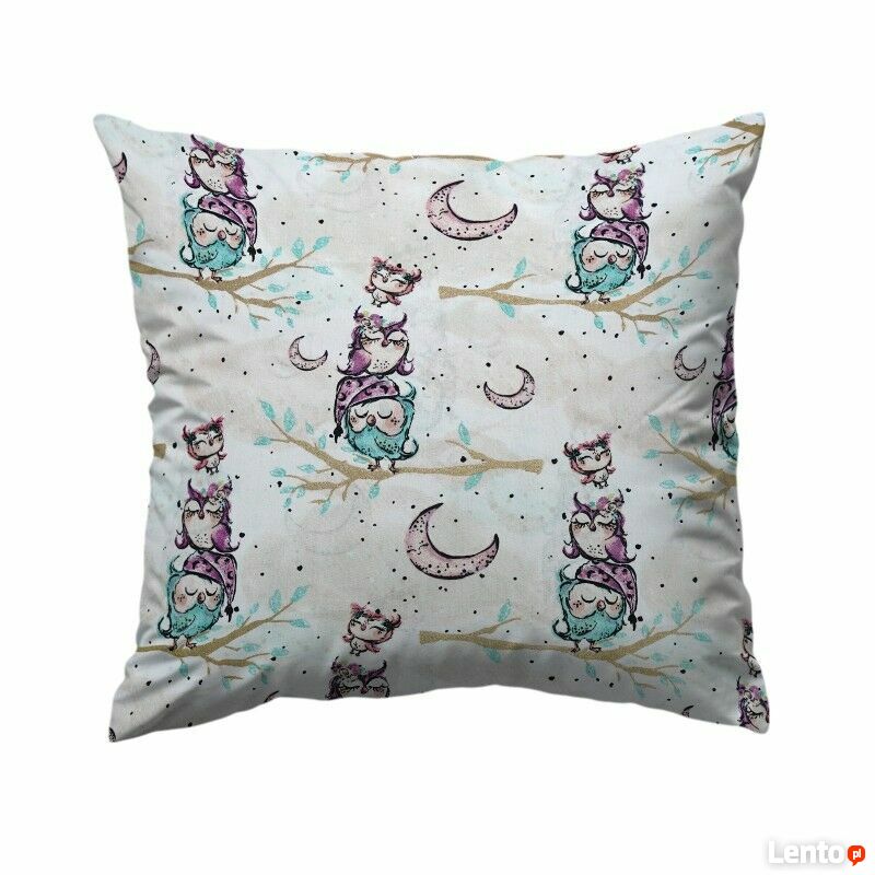 Bawełniana Poszewka Na Poduszkę 50x50 – Pastelowe Sówki i Księżyce