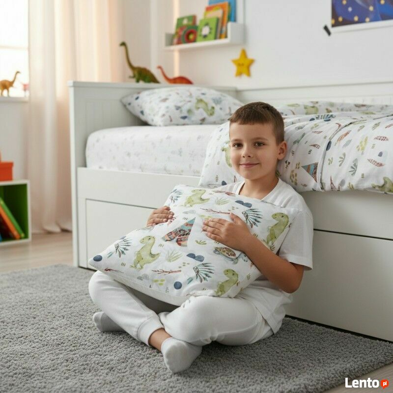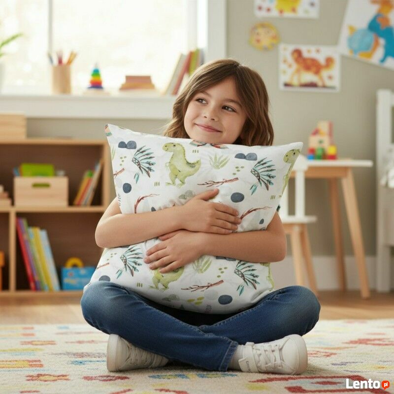 Bawełniana Poszewka Na Poduszkę – Wioska DinozaurówBawełniana poszewka z motywem wioski dinozaurów to wyjątkowy element dekoracyjny, który rozbudzi dziecięcą wyobraźnię i doda kolorów każdemu wnętrzu. Kolorowa grafika z uroczymi dinozaurami tworzy pogodny klimat w pokoju malucha, zachęcając do zabawy, nauki i odpoczynku. To doskonały wybór dla wszystkich małych fanów prehistorycznych stworzeń i przyrody.