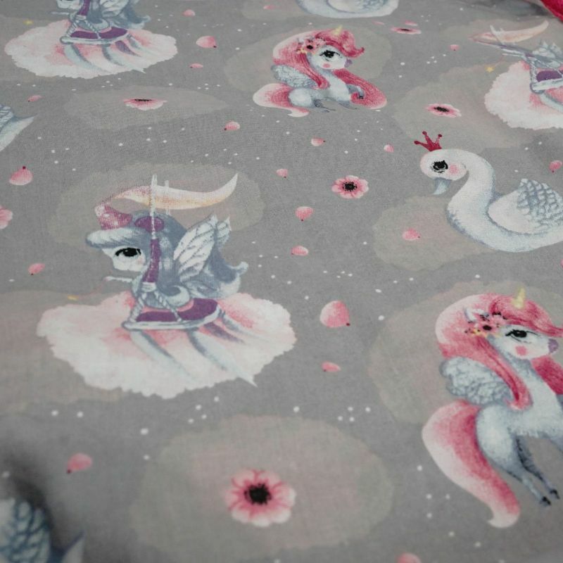 Wzór: Jednorożce i łabędzie – delikatny, bajkowy motyw