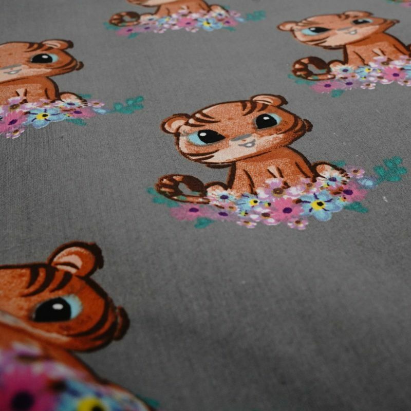 Wzór: tygryski na szarym tle – delikatny, dziecięcy motyw