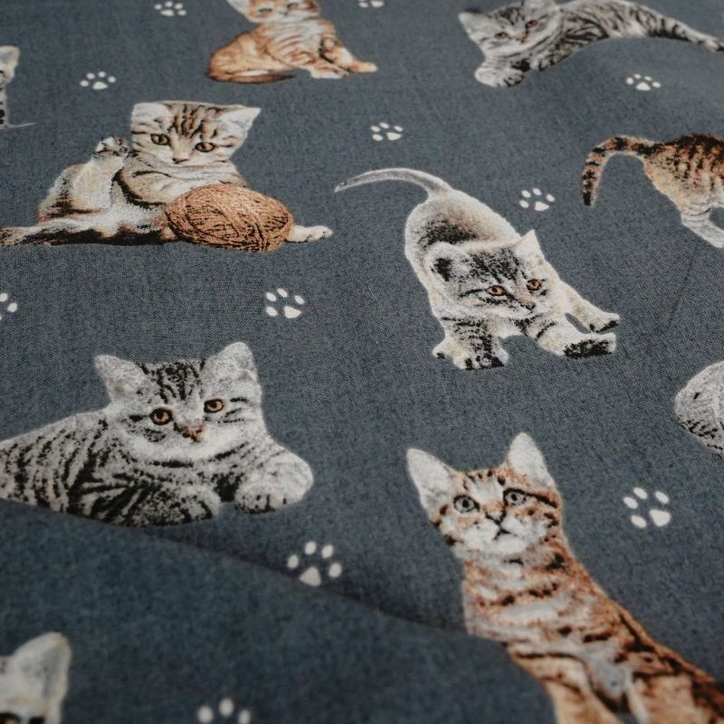 Bawełniany worek dziecięcy z kociętami na grafitowym tleBawełniany worek do przedszkola z motywem kociąt na grafitowym tle to lekki i wygodny plecak dla dziecka. Uroczy wzór z kotkami oraz stonowana kolorystyka sprawiają, że worek jest praktyczny i atrakcyjny wizualnie.