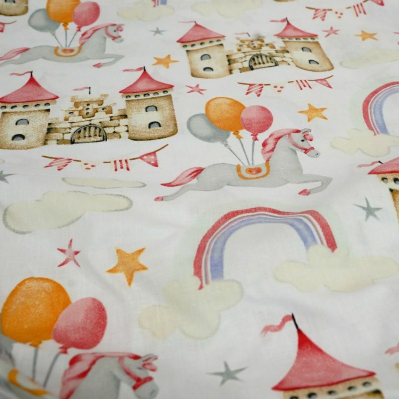 Wzór: zamek, jednorożce i tęcza – bajkowy, dziecięcy motyw