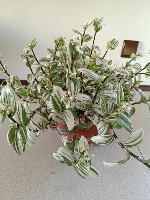 Sprzedam trzykrotka biała doniczkowa Średnica doniczki około 15 cm Wysokość 11 cm Obwód doniczki 53 cm Roślina ...