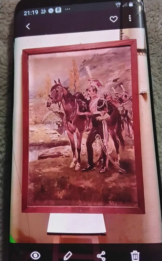 OBRAZ WŁADYSŁAW KOSSAK NA PŁUTNIE.WYMIARY 90/60. WIĘCEJ INFORQMACI TEL. 782 - pokaż numer telefonu - Rzeczywiste kolory są inne .Zdjęcie jest robione ze słabego telefonu.Przemysław