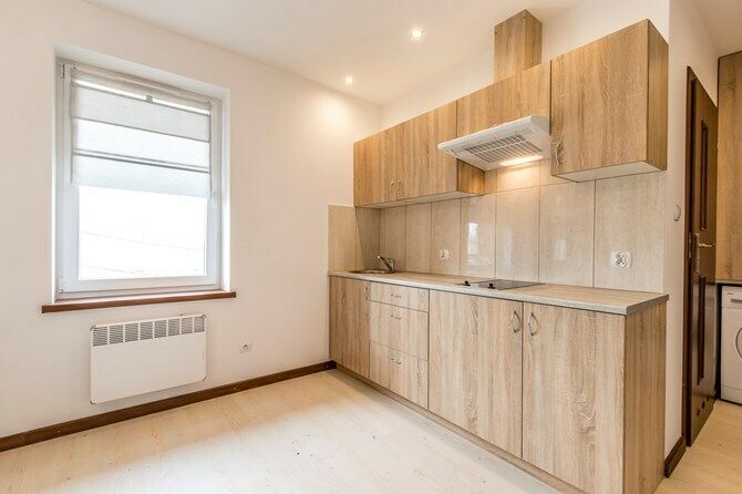 Aneks kuchenny: szafki kuchenne, okap, lodówka, płyta ceramiczna 2