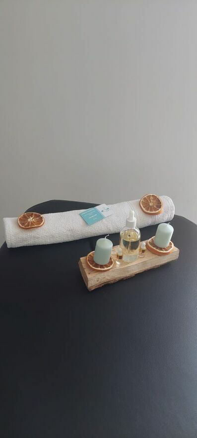 2. Przyjeżdżam na miejsce z profesjonalnym stołem, olejkami i muzyką.