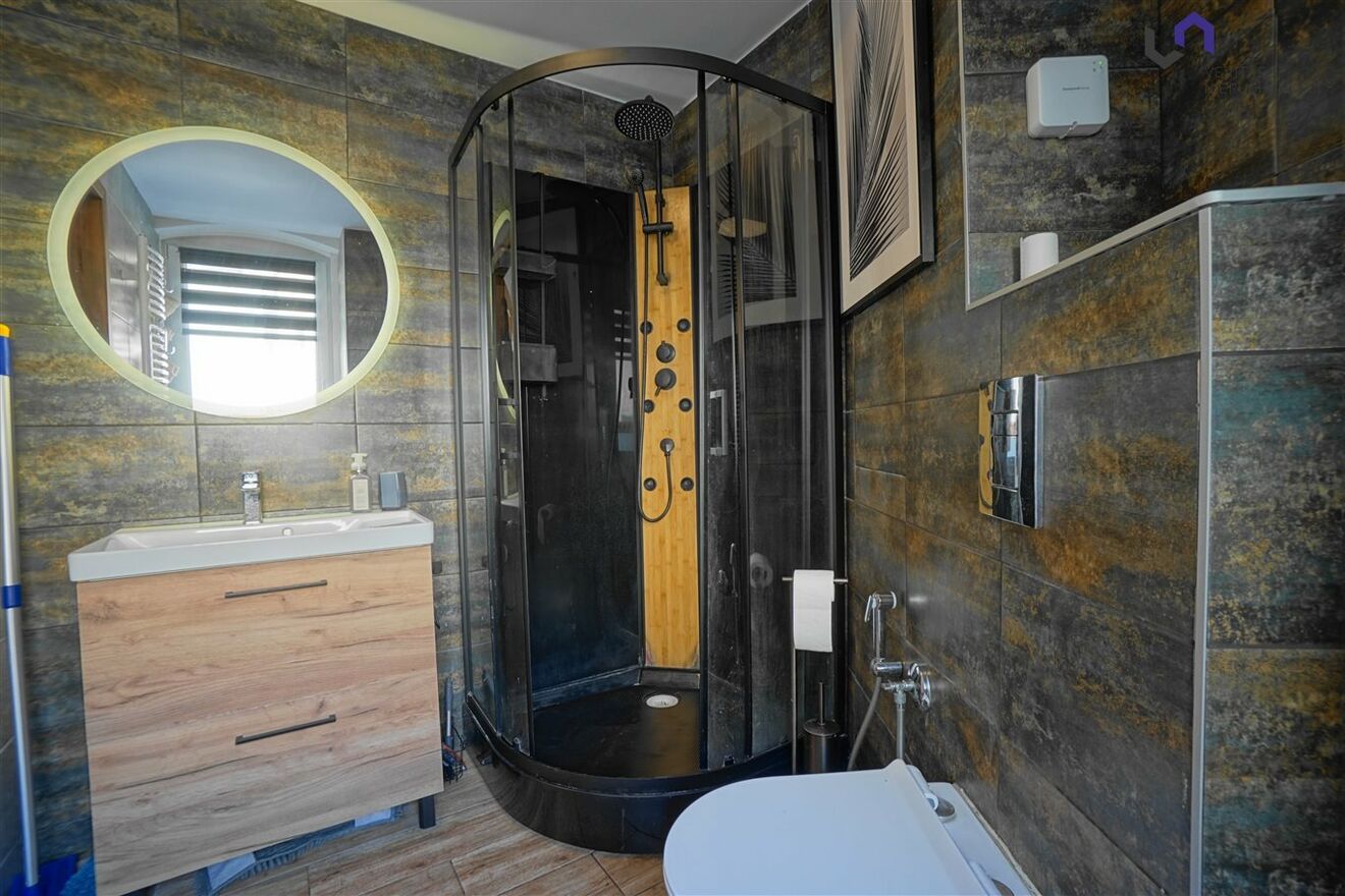 - Łazienka z toaletą wyposażona w kabinę prysznicową
