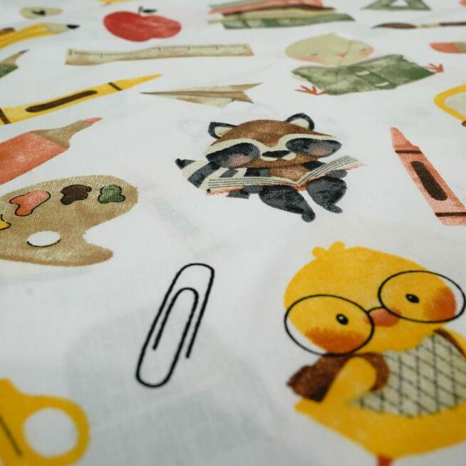 Bawełniany worek do przedszkola z motywem szkolnym Bawełniany worek do przedszkola „Szkolne motywy z autobusem i ...