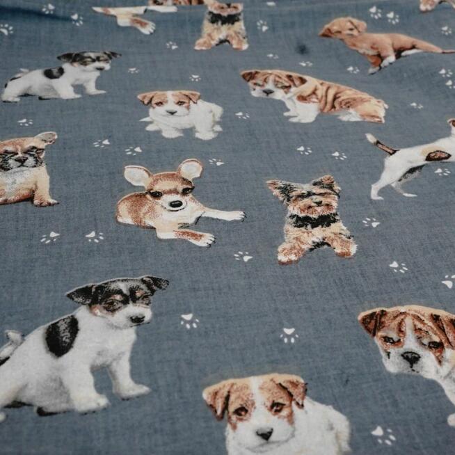 Bawełniany worek do przedszkola z motywem szczeniaków Bawełniany worek do przedszkola „Szczeniaki na szarym tle” to ...