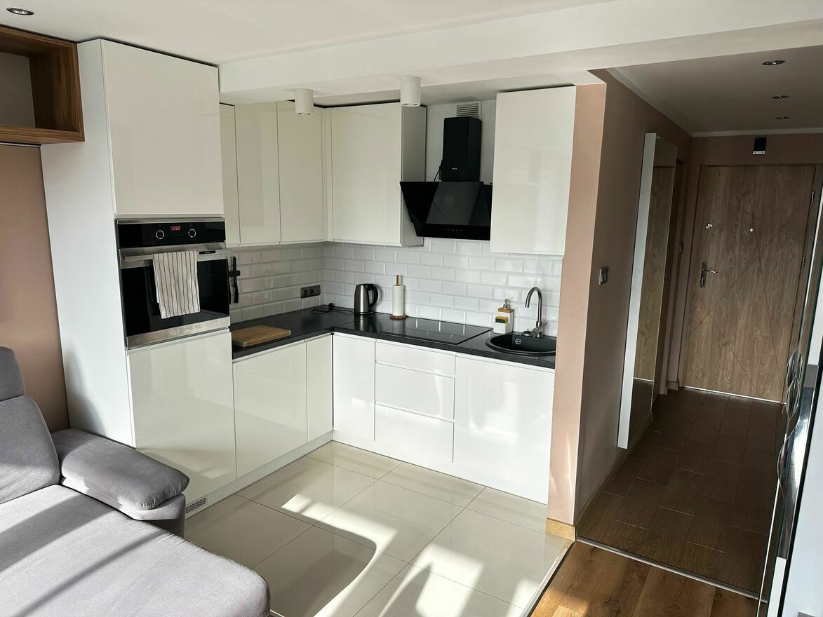 Nowoczesna, w pełni wyposażona kawalerka na 8. piętrze w bloku z windą.
