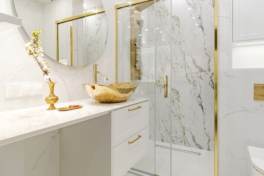 wizualizacje łazienek), dobór i dostarczenie materiałów, prace