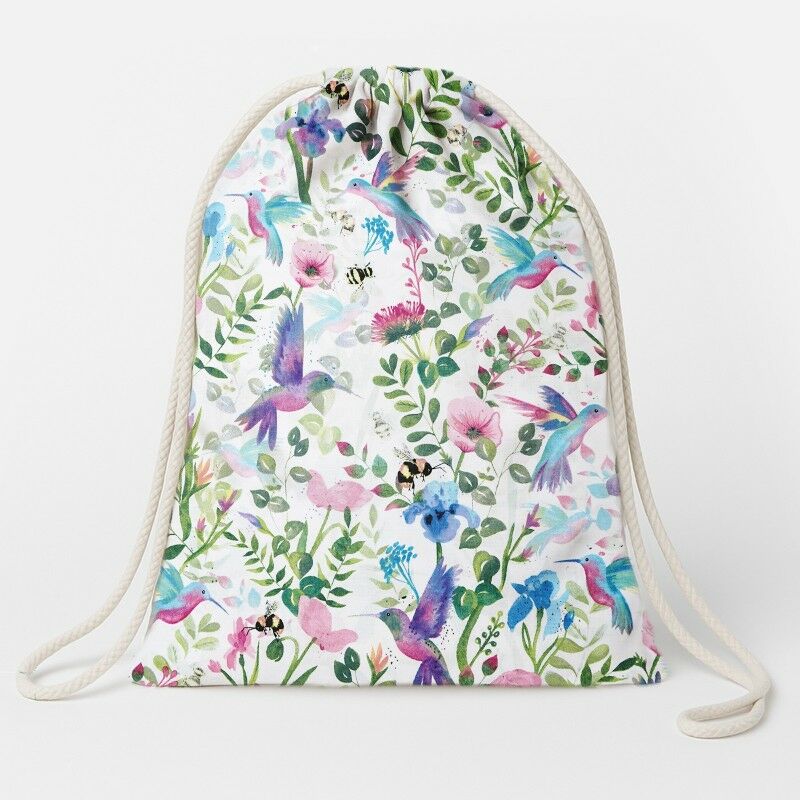 Uroczy nadruk z ptakami i kwiatami w pastelowych kolorach sprawia, że plecak prezentuje się wyjątkowo delikatnie i radośnie. Każdy egzemplarz to produkt handmade – uszyty w małej polskiej pracowni z najwyższą starannością. Zamykany na bawełniany sznurek, który pełni też funkcję szelek – lekki, wygodny i prosty w użytkowaniu.