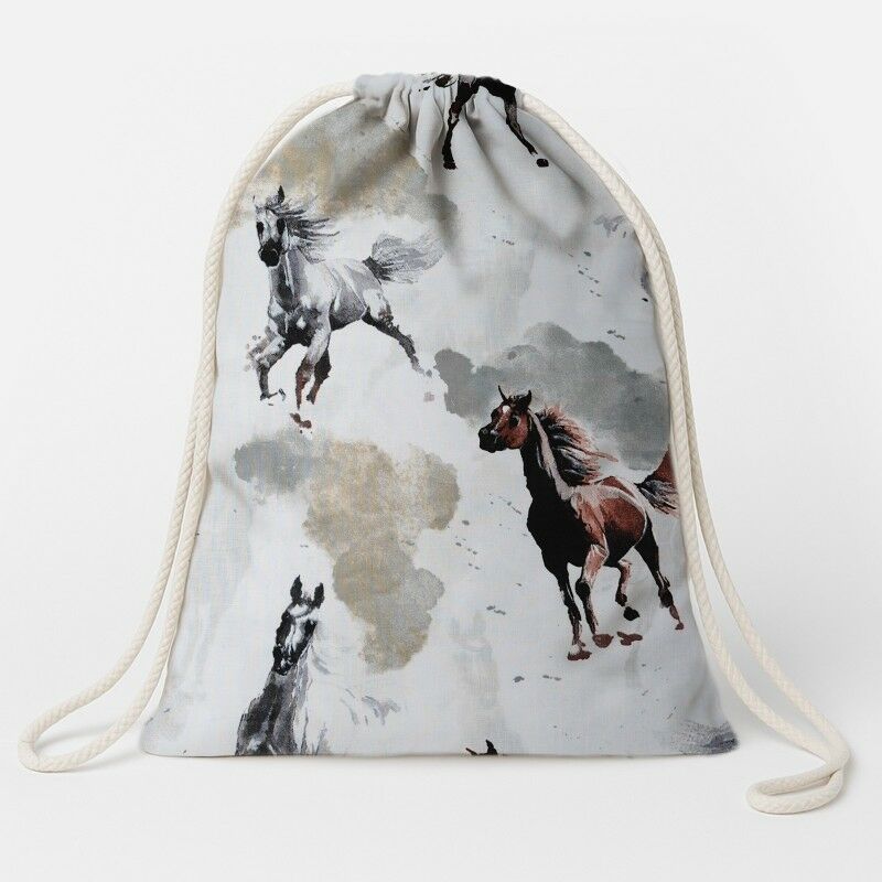 Motyw koni w naturalnych barwach na jasnym tle sprawia, że plecak wygląda wyjątkowo stylowo i ponadczasowo. Każdy egzemplarz to produkt handmade – uszyty z pasją i dbałością o detale w małej polskiej pracowni. Zamykany na bawełniany sznurek, który pełni również funkcję szelek – wygodny i prosty w użytkowaniu.