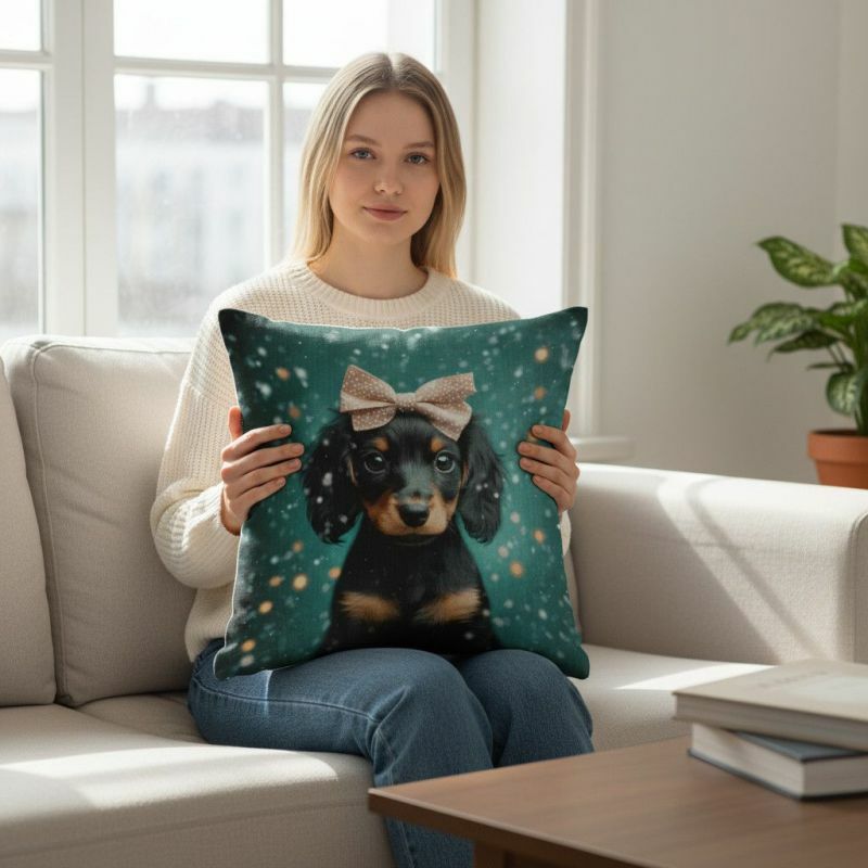 Poduszka z Jamnikiem to nie tylko stylowa dekoracja, ale także świetny pomysł na prezent dla każdego fana czworonogów. Wprowadź do swojego domu ciepły, przyjazny klimat z wyjątkową poduszką od Szycie z pasją!