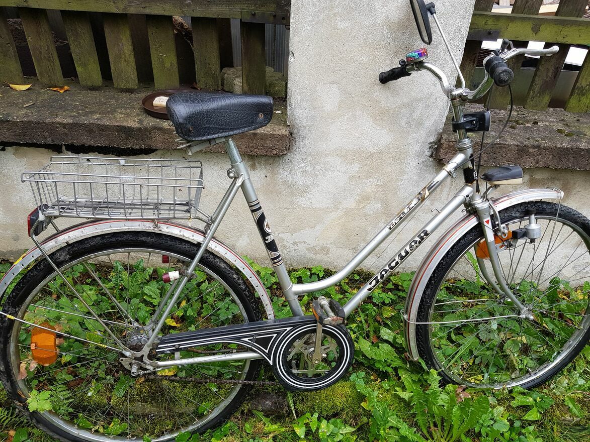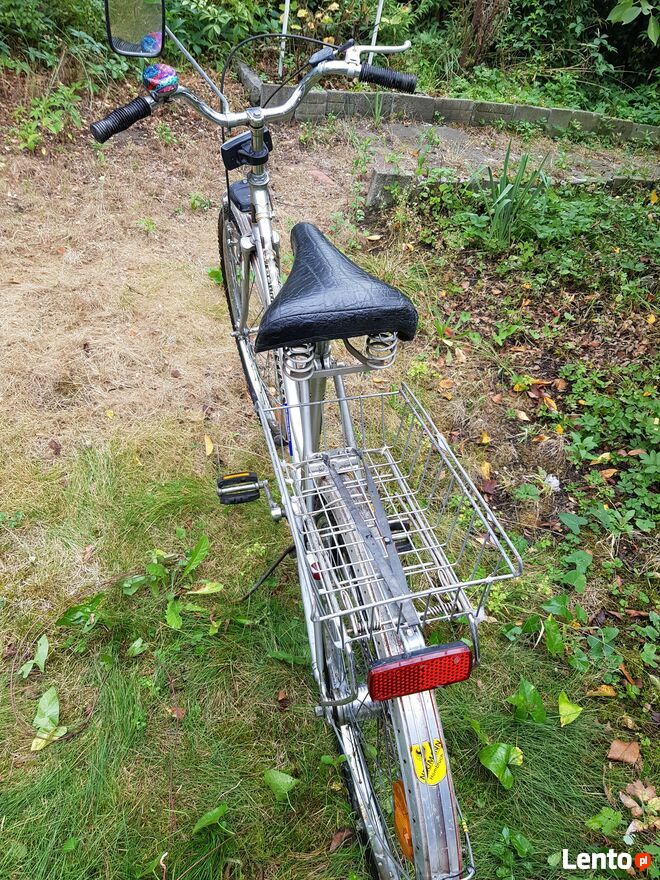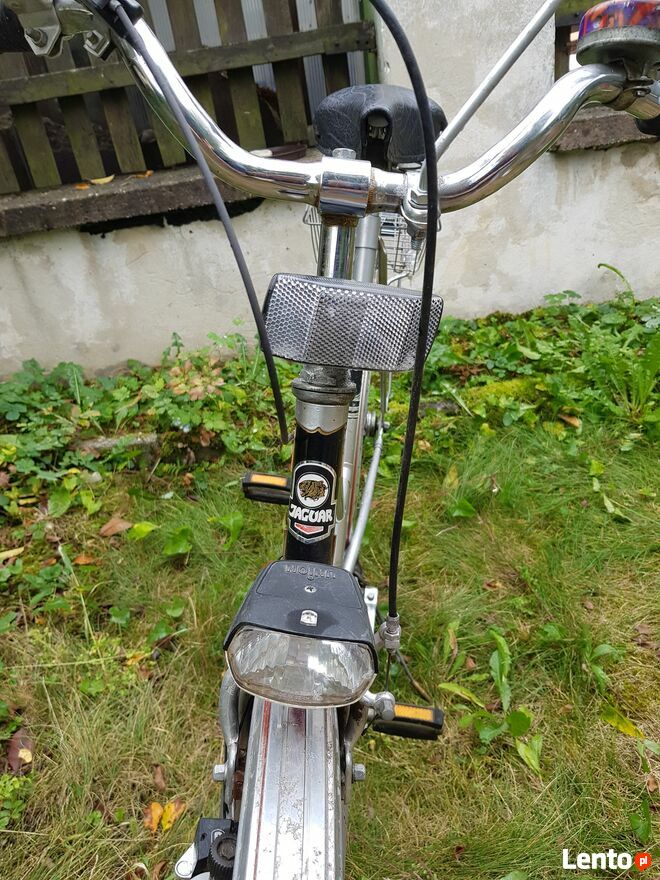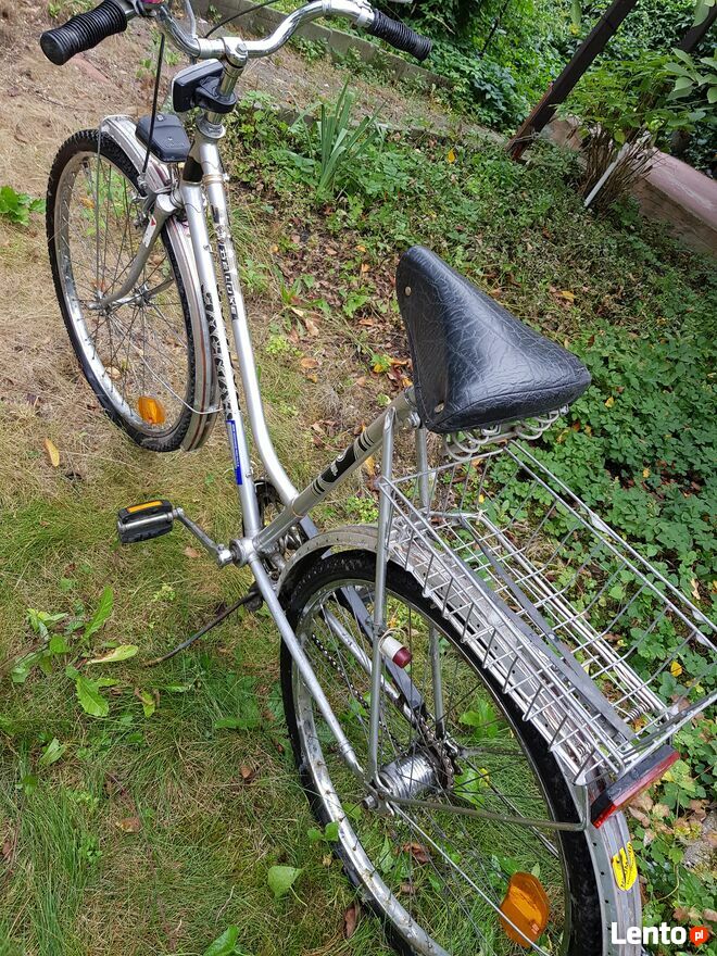 Rower miejski damka Jaguar de Lux w stanie widocznym na zdjęciach.Rower stał dwa lata nie używany więc jest do przeglądu.Przed postojem był sprawny.Koła bez powietrza.Stan jak na foto. Odbiór osobisty-nie wysyłam.Sprawdź zainteresowanie tym ogłoszeniem