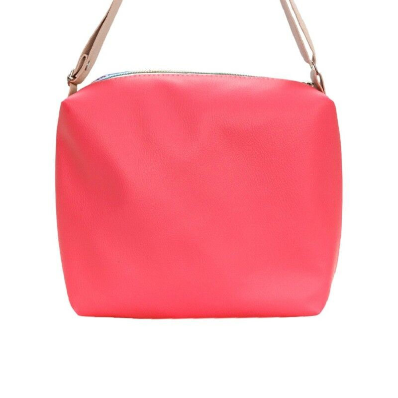 Torebka posiada komorę główną zamykaną na zamek oraz wewnętrzną kieszonkę otwartą, idealną na drobiazgi. Z przodu znajduje się praktyczna kieszeń zamykana na dwa magnesy, która pomieści klucze lub telefon. Regulowany pasek (62–114 cm) pozwala nosić torebkę wygodnie na ramieniu lub przez ramię.