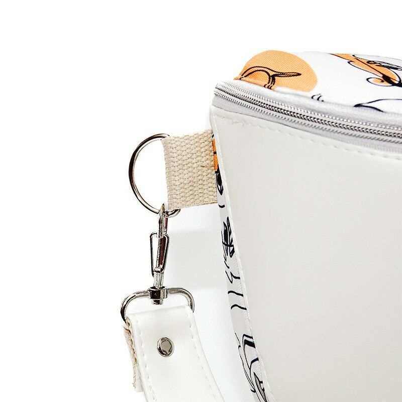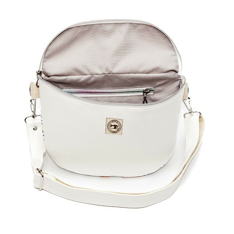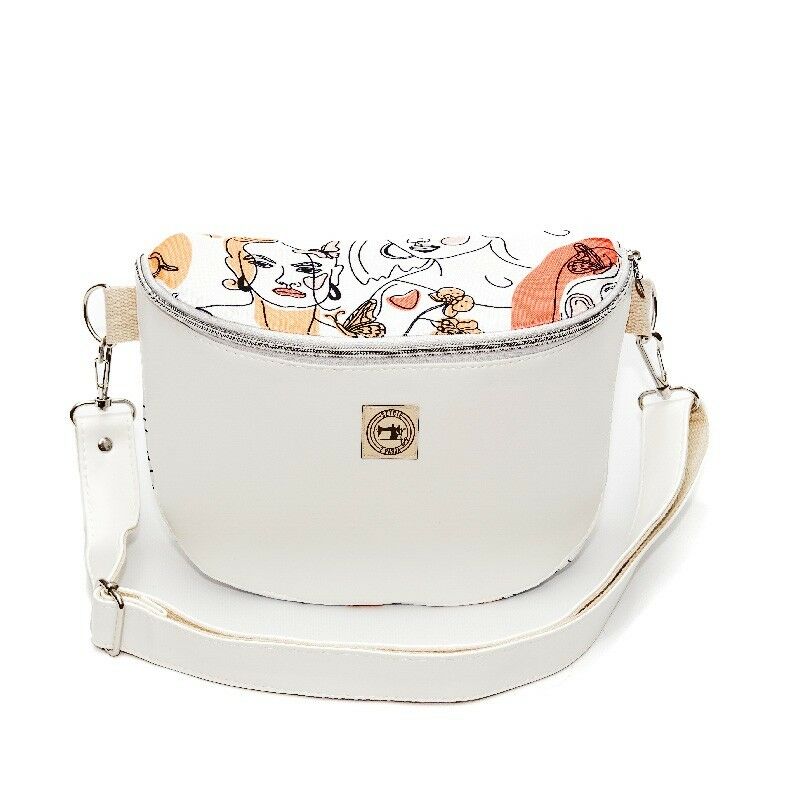 Biała Torebka-Nerka z Motywem Artystycznych Twarzy – 3w1 HandmadeNowoczesna torebka-nerka handmade wykonana z połączenia białej ekoskóry i tkaniny poliestrowej w motyw artystycznych twarzy. To funkcjonalny model 3w1, który możesz nosić jako nerkę w pasie, torebkę na ramię lub torebkę crossbody.