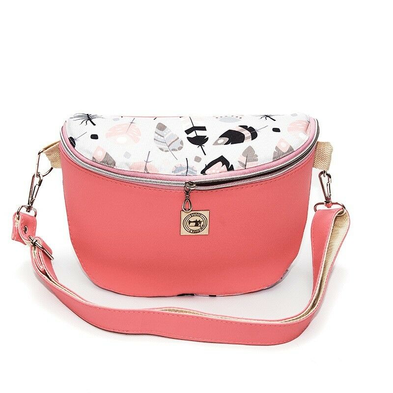 Różowa Torebka-Nerka z Motywem Piórek – 3w1 HandmadeUrocza torebka-nerka handmade wykonana z połączenia różowej ekoskóry i tkaniny poliestrowej z subtelnym wzorem pastelowych piórek. To praktyczny model 3w1, który możesz nosić jako nerkę w pasie, torebkę na ramię lub torebkę crossbody.