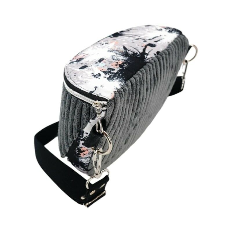 Torebka-Nerka Sztruksowa Szara z motywem Art Splash – handmade 3w1Nowoczesna torebka-nerka sztruksowa w kolorze szarym to wyjątkowy model 3w1 – możesz ją nosić jako nerkę w pasie, torebkę na ramię lub torebkę crossbody. To połączenie eleganckiego sztruksu z wodoodpornym materiałem poliestrowym ozdobionym abstrakcyjnym wzorem Art Splash – idealne dla kobiet, które lubią oryginalne i stylowe dodatki.