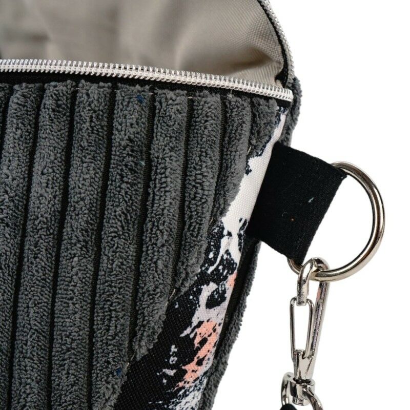 Ta szara torebka-nerka handmade to idealny wybór dla kobiet, które cenią minimalizm i funkcjonalność w eleganckim wydaniu. Nowoczesny wzór Art Splash w połączeniu z miękkim sztruksem sprawia, że każda stylizacja nabiera wyjątkowego charakteru ????