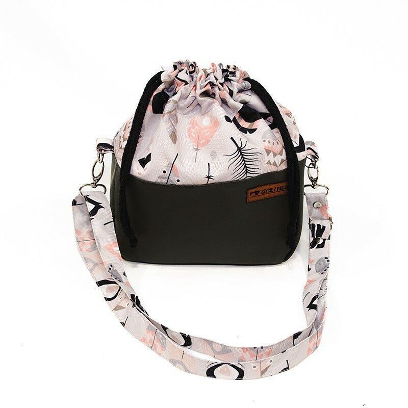 Torebka posiada jedną komorę główną zamykaną na sznurek troczek, co zapewnia wygodę i funkcjonalność. Wewnątrz znajduje się przestrzeń na najpotrzebniejsze drobiazgi. Regulowany pasek (78–146 cm) umożliwia dopasowanie długości do sylwetki, a jego odpinana konstrukcja pozwala na łatwą wymianę lub przechowywanie.