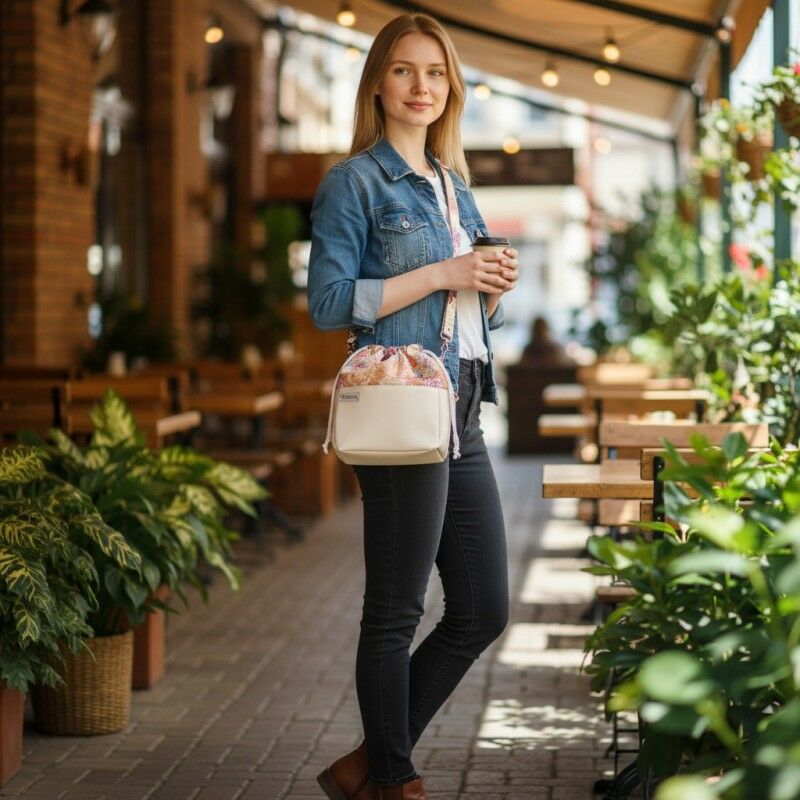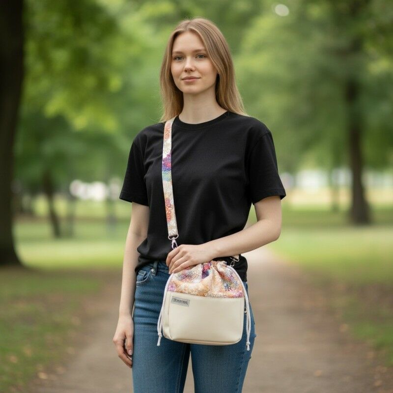 Torebka Sakiewka Kremowa z Motywem Mandali to propozycja dla kobiet ceniących delikatność, harmonię i wyjątkowe wzory. Idealna do stylizacji boho, romantycznych sukienek lub casualowych zestawów – przyciąga uwagę, ale pozostaje subtelna.