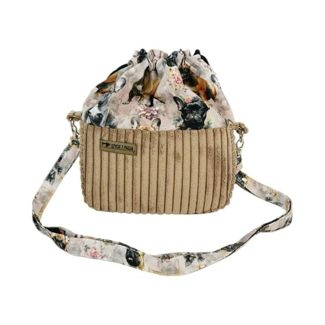 Brązowa torebka sakiewka sztruksowa z motywem buldogów francuskich – handmade Urocza torebka sakiewka handmade wykonana ...