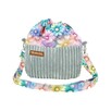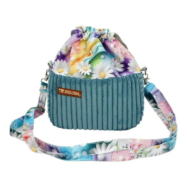 Torebka sakiewka sztruksowa morska z motywem tęczy i stokrotek – handmade Wyjątkowa torebka sakiewka o miękkim, ...