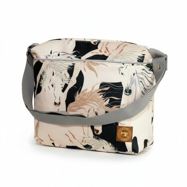 Mała Torebka na Ramię z Beżowym Motywem Koni Mała Torebka Damska - Beżowe Konie to wyjątkowy dodatek dla kobiet, ...