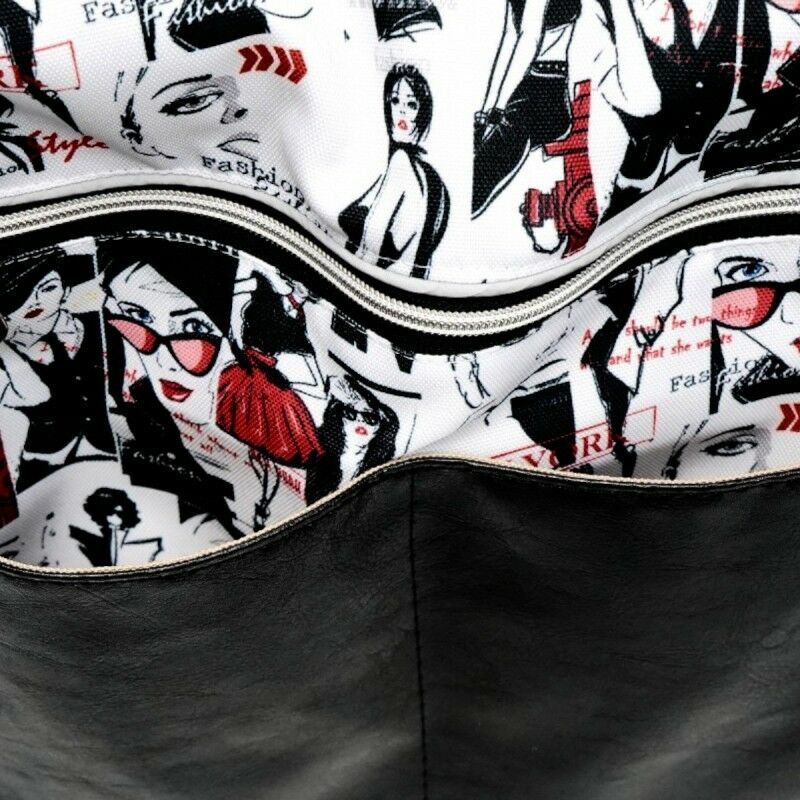 Worko-Plecak Czarny z Motywem Fashion – Handmade z Ukrytą Kieszenią na Zamek