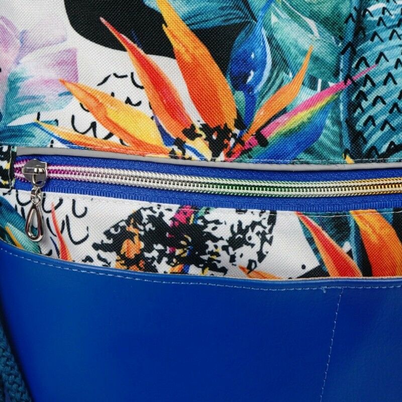 Worko-Plecak Niebieski z Motywem Dżungli – Handmade z Ukrytą Kieszenią na Zamek