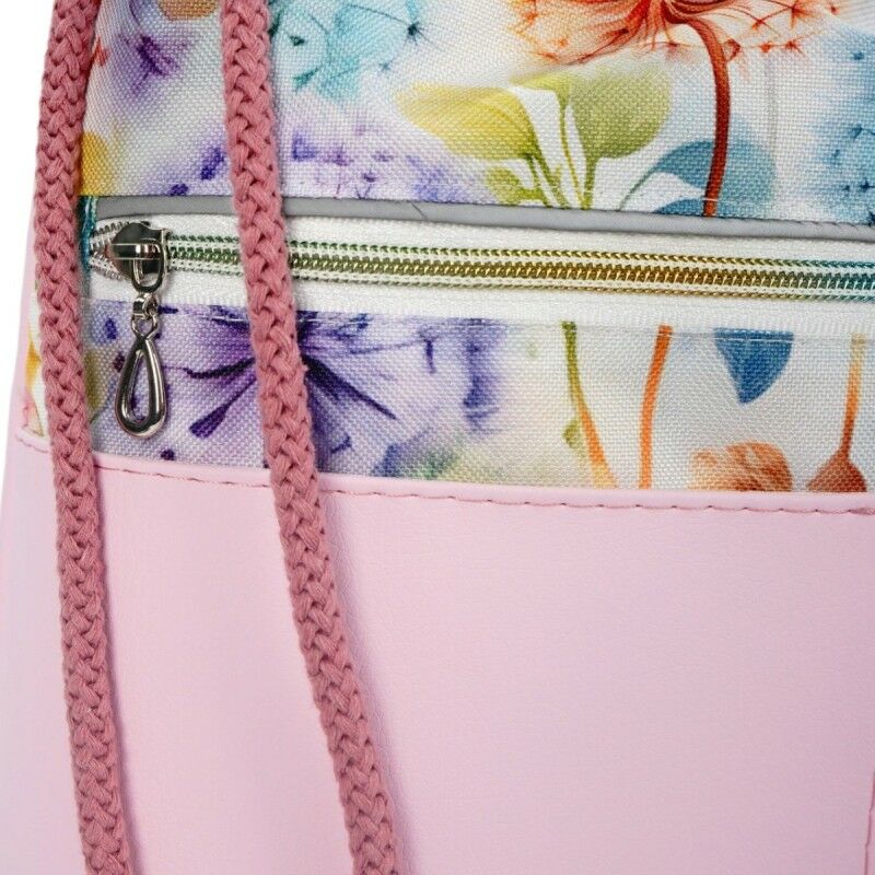 Worko-Plecak Różowy z Motywem Dmuchawców – Handmade z Ukrytą Kieszenią na Zamek