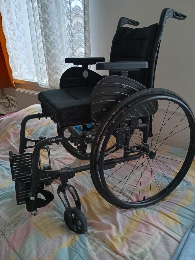 Lekki aluminiowy składany wózek inwalidzki o wysokiej wydajnościMało używany w bardzo dobrym stanie.