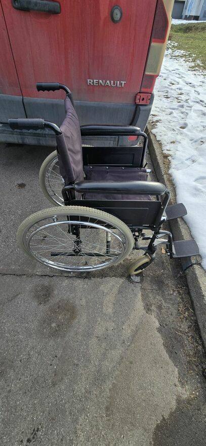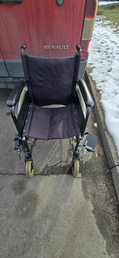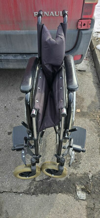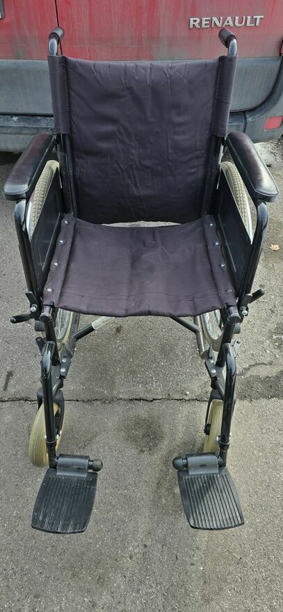 Stalowy wózek inwalidzki przeznaczony dla osób mających problemy z samodzielnym poruszaniem się oraz dla osób z dysfunkcjami i ograniczeniami ruchowymi.