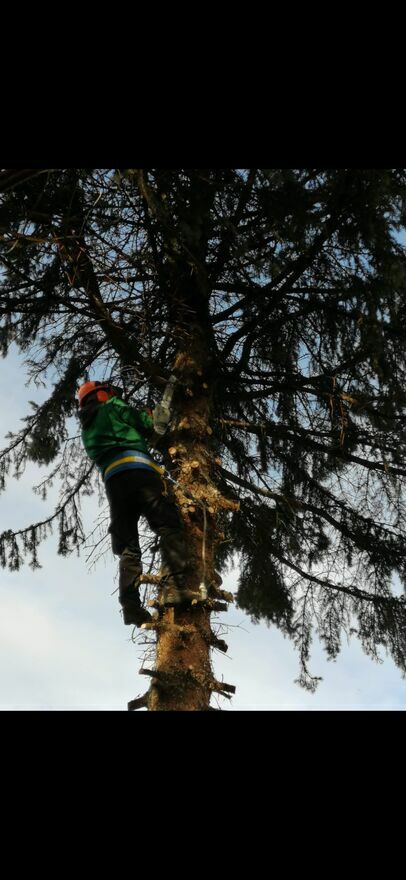 Wycinka drzew oraz usuwanie drewna i gałęzi.